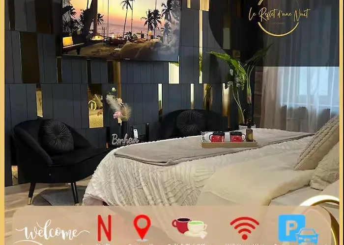 Apartament L'Elegance - Charme - Secret - Jacuzzi - Parking Sarrebourg o powierzchni 45 m² oferuje jacuzzi, które zapewniają jeszcze przyjemniejszy pobyt. Chapel of the Cordeliers leży 950 m stąd, a Muzeum w Sarrebourgu - w odległości 10-minutowego spaceru.